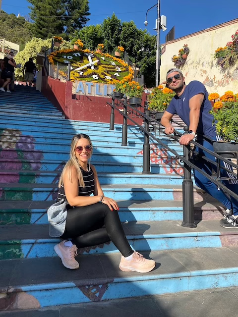 A continuación, nos dirigiremos a un mirador que domina el pueblo de Atlixco. Desde aquí podrá admirar la singularidad del pueblo, con las montañas a lo lejos y el colorido de sus calles. Después de disfrutar del paisaje, bajaremos por La Escalera Ancha, una encantadora calle adornada con decoraciones festivas que celebran la esencia del Día de los Muertos. Mientras descendemos, disfrutaremos de las vistas de la ciudad, bellamente transformada para la ocasión.